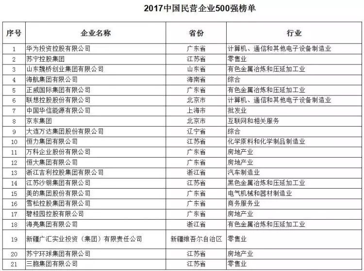 2017中国民营企业500强出炉:内蒙古6家企业上榜