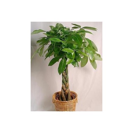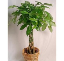 发财树花单生枝顶叶腋;花梗粗壮,被黄色星状茸毛,脱落;萼杯状,近革质;花瓣淡黄绿色,狭披针形至线形,上半部反卷;雄蕊管较短,下部黄色,向上变红色,花药狭线形,弧曲;花柱长于雄蕊,深红色