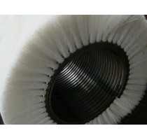 2、磨料丝毛刷辊:磨料丝中添加金钢砂等特殊材料,其耐磨度上更胜尼龙丝一筹。因为其具有耐酸,耐碱等特性,广泛用于钢材的初加工,钢板的除锈,镀锌钢板的生产,钢板彩涂等行业。