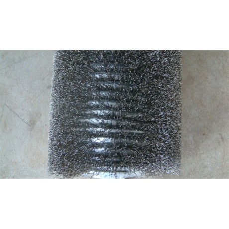 2、磨料丝毛刷辊:磨料丝中添加金钢砂等特殊材料,其耐磨度上更胜尼龙丝一筹。因为其具有耐酸,耐碱等特性,广泛用于钢材的初加工,钢板的除锈,镀锌钢板的生产,钢板彩涂等行业。