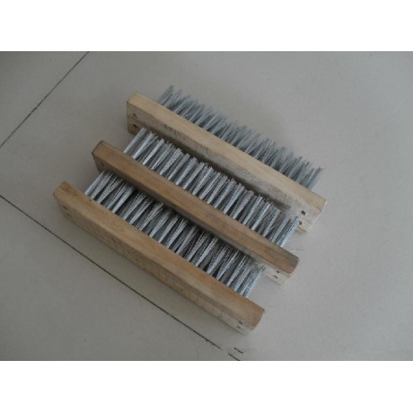 钢丝刷直丝和曲丝两种 1、直丝比较适合于钻孔植毛方式的刷子较多,如木板钢丝刷,木柄钢丝刷,圆盘钢丝刷等;而曲丝应用范围基本上每种类型的钢丝刷可采用,特别是弹簧钢丝刷辊非曲丝不可,用直丝的话,钢丝对折后根本就不可能规范、整齐。 2、曲丝是由于它本身的弯曲度在制作时可相对吻合附近的刷丝,这样对折后的钢丝即使不对称、倾斜度稍偏也看不出来,并且这样环绕而成的刷辊表面钢丝更显得密度高、结实、除锈回弹力度大。钢丝刷所用钢丝型号有201#、206#、304#、316#等,针对不同用途选取相应的型号钢丝,选取不同的钢丝直径,这样可避免不必要的浪费及达到理想的清除效果.201#钢丝浸水后较易生锈,206#不锈钢丝其韧性比之204#要强得多,适用于铝业厂对铝带表面进行刮痕、基理等特殊处理,或者用于塑胶业、木业去毛刺等。304#不锈钢丝算比较优质的一种钢丝,它不仅韧性强,且耐酸碱性,适合于钢板或矿业、机械制造行业,对钢材表面进行除锈、去油、酸洗等。钢丝有直丝和波纹丝两种,丝的粗细可根据不同的需要而定。上海布鲁斯敦实业有限公司咨询热线:021-60259232