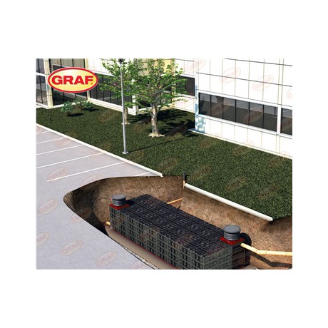 GRAF蓄水池模块设计巧妙、结构合理,承压能力强,本标注承压40吨的蓄水池模块,40吨的承载数据根据竖向承压、侧向承压、交通荷载承压、耐久承压等各类数据综合得出,保证在设计使用50年的使用过程中,始终符合设计使用要求。
