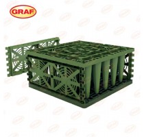 GRAF蓄水池模块设计巧妙、结构合理,承压能力强,本标注承压40吨的蓄水池模块,40吨的承载数据根据竖向承压、侧向承压、交通荷载承压、耐久承压等各类数据综合得出,保证在设计使用50年的使用过程中,始终符合设计使用要求。
