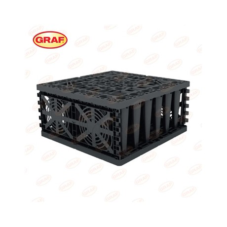 GRAF蓄水池模块设计巧妙、结构合理,承压能力强,本标注承压12吨的蓄水池模块,12吨的承载数据根据竖向承压、侧向承压、交通荷载承压、耐久承压等各类数据综合得出,保证在设计使用50年的使用过程中,始终符合设计使用要求。假如按国内目前的检测标准,GRAF该型号模块承压能力超过40吨。