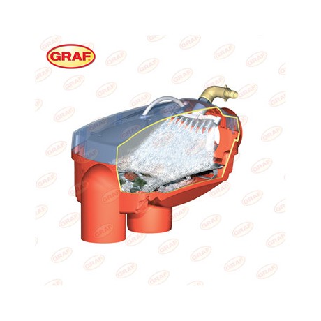 落水管过滤器,是GRAF家用雨水罐的配套用过滤器,可以过滤雨水中的污物,过滤精度高达0.35mm,可适配DN70~DN100的落水管。可以适配的屋面面积可达80㎡至200㎡。