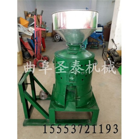 碾米脱皮机工作室内装有铁筛网,筛网内安装砂轮磨,在筛网和砂轮磨之间形成一个原粮脱皮空隙,工作时筛网和砂轮反向转动,将粮食籽粒的种皮脱除,在脱皮的同时结合风选来分离仁和种皮,从而大大降低了破碎率,更为有效的提高脱皮质量和产量。