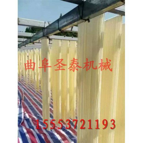 将淀粉和水按比例调浆后送入粉条机进料口内通过螺旋推进装置将粉推进粉条漏板漏出,采用水蒸汽原理,双层水箱,给水加热,蒸煮粉条机内管,使粉条在螺旋推进当中得到成熟。采用独有的双螺旋更利于粉条的熟化,粉条在成形过程中经 100 度沸水煮熟,与手工制粉条的原理相同,没有破坏粉丝的分子结构,所以和手工工艺相似.粉条机加工粉条比原手工节省人力、物力。大大的减少了淀粉的浪费。一斤淀粉可以加工一斤粉丝(原手工加工为一斤淀粉7两左右的粉丝)。