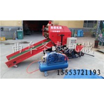 “圣泰”牌ST-5552A青贮打捆包膜一体机其特征在于将6人操作为2-3人即可实现。打捆机、包膜机通过改造,使捆扎好的圆捆开仓后自动滚入包膜机旋转架上自动包膜运转。