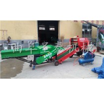 “圣泰”牌ST-5552A青贮打捆包膜一体机其特征在于将6人操作为2-3人即可实现。打捆机、包膜机通过改造,使捆扎好的圆捆开仓后自动滚入包膜机旋转架上自动包膜运转。