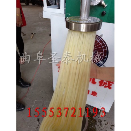 圣泰粉条机以红薯淀粉、土豆淀粉、木薯淀粉、玉米淀粉等为原料,不但可以生产不同粗细的粉条,还可生产扁粉、粉丝、粉皮、酸浆米线、米豆腐、碴条等,实属一机多用,每公斤淀粉出粉条、粉丝、扁粉、粉皮1.05-1.1公斤。