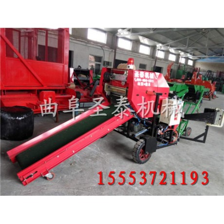 圣泰牌青贮打捆包膜一体机建议用人3人,一人送料,一人开仓方捆和包膜,一人推走摆放。本机器与传统机器相比,节省人工60%,每45秒一捆,每24秒包膜2层/48秒包膜4层,成捆效率增长21%,包膜效率增长40%,成捆重量达60-100kg.